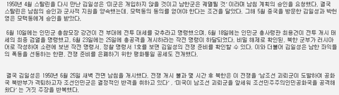 6.25전쟁은 그들이 한반도 에치슨라인을 철수하여 일어났다라고 주장하였습니다.