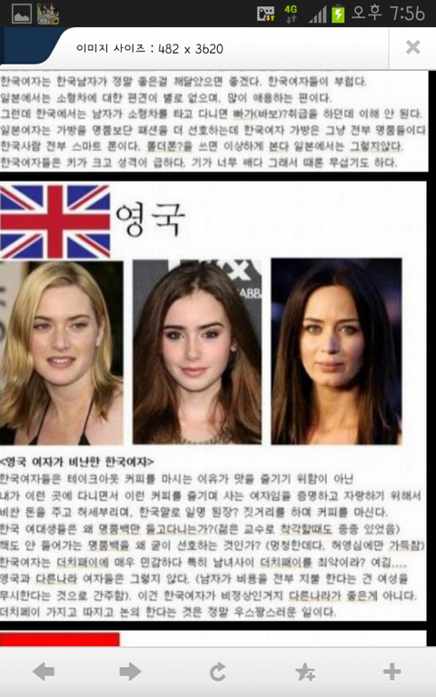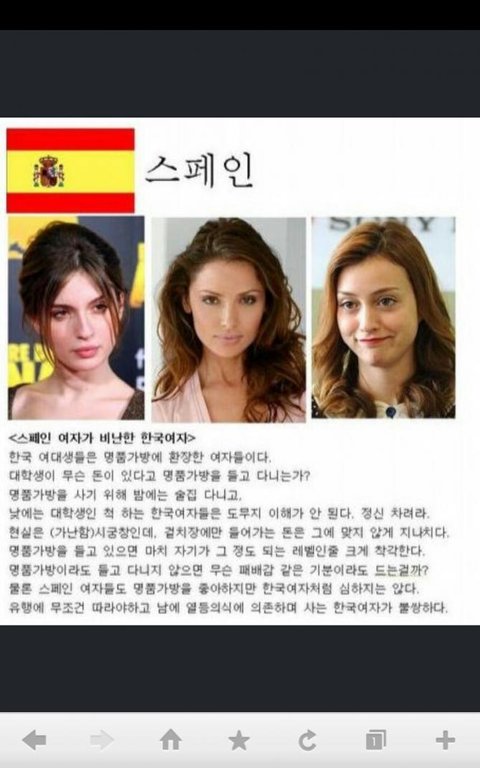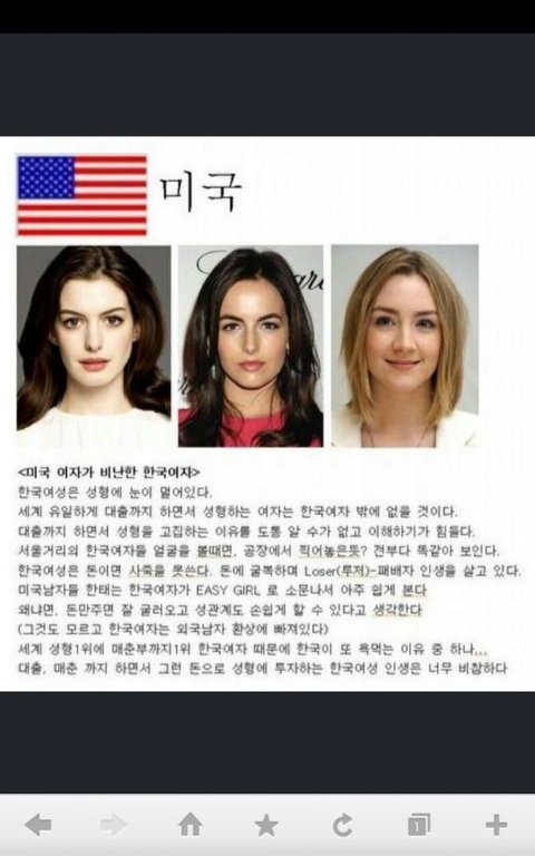나도 남자고 글에는 어느정도 공감하지만 저렇게 다른나라 여자들이 한국여자를 깟다는것 자체는 뻥같음..그냥 남자가 만든것 같은느낌. 여튼 글보고 조금은 반성햇으면