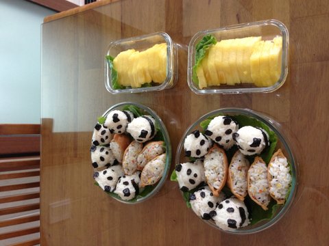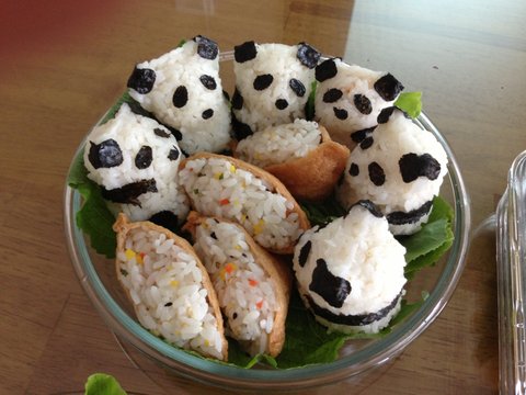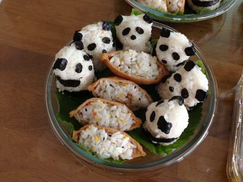 유부초밥을 감싸는 팬더들.. 나름 귀욥네요.