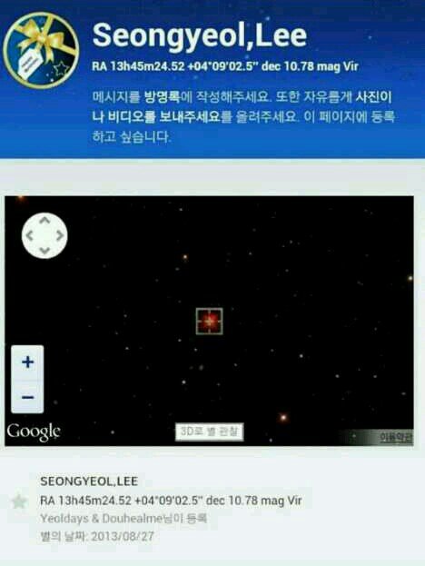 저번에 도경수 별이 화제가 되었었는데 이번에는 이성열 별이에요!