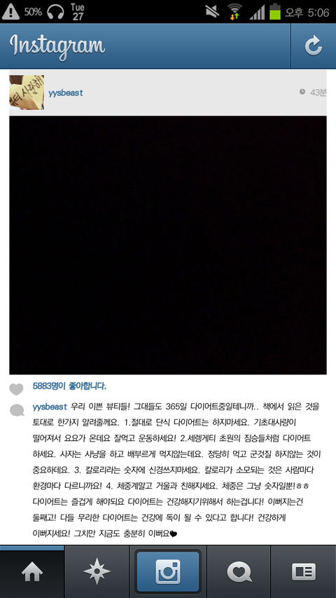 오늘 올라온 양요섭의 인스타그램 글 중 유독 눈에띄는 글 하나!