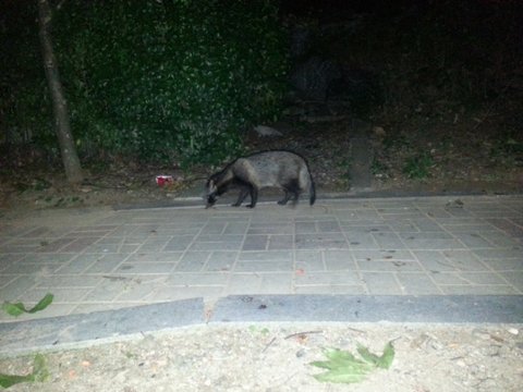 저를 포함해 지나가던 행인 3명에서 너구리에게 음식을 주려고했는데