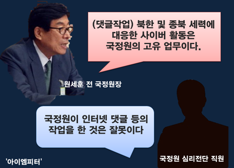 원세훈 측 이동명 변호사의 공소사실 부인과 다르게 검찰 조사를 받은 국정원 심리전단 직원은 "국정원이 인터넷 댓글 등의 작업을 한 것은 잘못이다"라는 진술을 한 것으로 확인됐습니다.