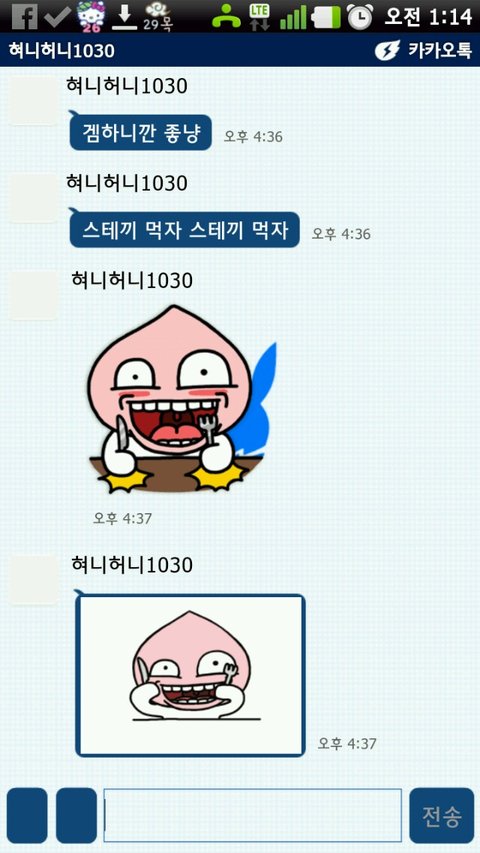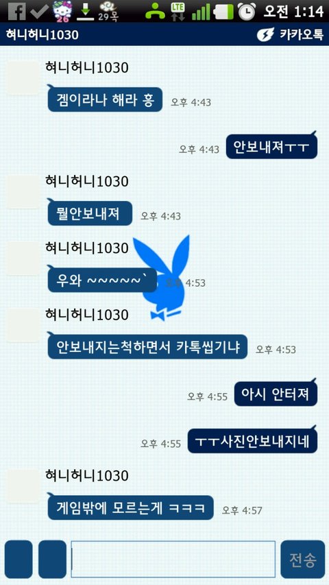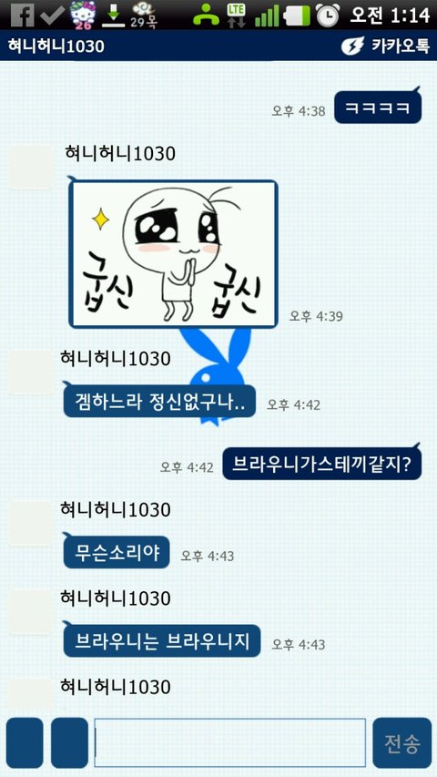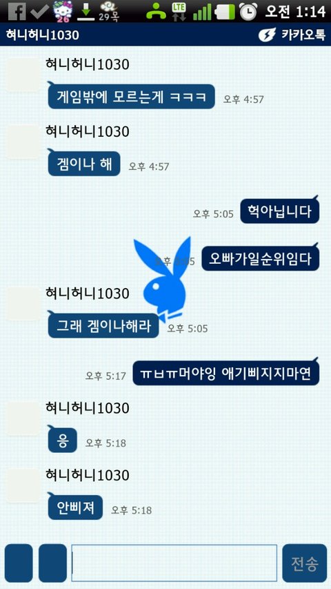 저희는 평일에 서로일하느라 바빠서 토요일만 보고 일요일도 가끔봐요 오늘은 오랜만에 친구만나서 겜방에 갔어요 겜하는도중 보낸 카톡내용입니다