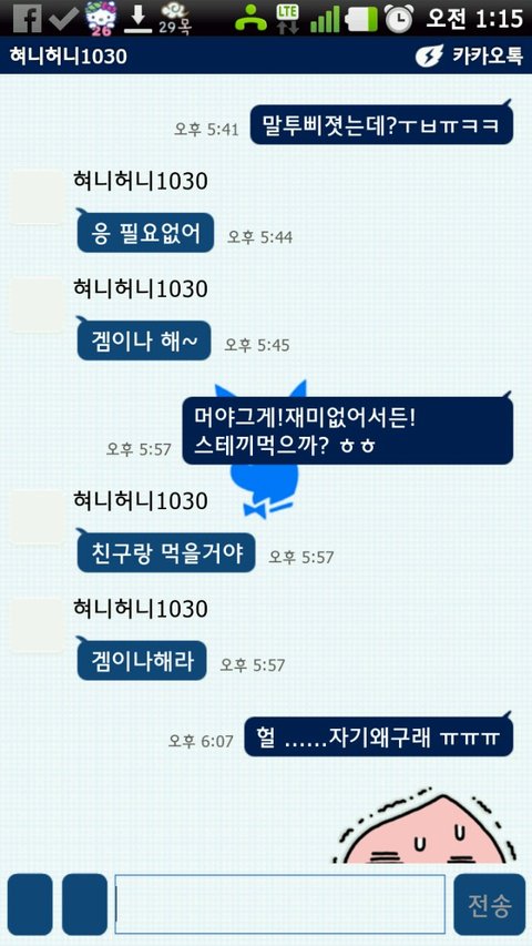여지껏 싸운적도 한번도 없고 하루에한번씩은 꼬박 연락했어요 근데 오늘 카톡보내다가 서로 기분상했네요 솔직히 모르겠는데 어떤부분에서 화가난건지 좀 알려주시겠어요 ?ㅠㅠ 참고로 혀니허니1030이 남친입니다; 전여자구여