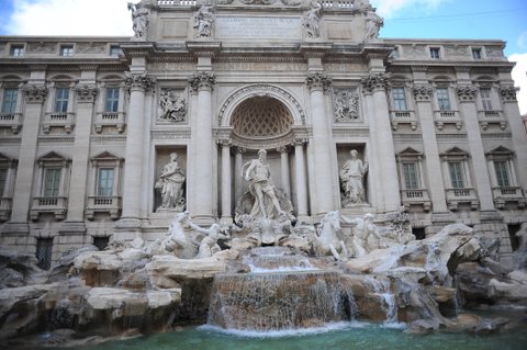 오른손으로 동전을 쥐고 왼쪽 어깨 뒤로 동전을 분수에 던지면 '다시 로마에 돌아온다'는 속설이 있어요.