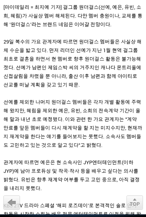 초록창 실검이길래 ...보니깐 원더걸스 사실상해체래..