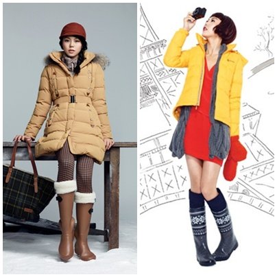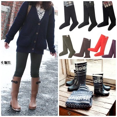 더욱 따듯해 보이는 겨울 니삭스와 레인부츠! 비 오는 날만 미끄러운 거 아니니까, 눈 오는 날 얼마나 미끄러운지 느낌 아니까~