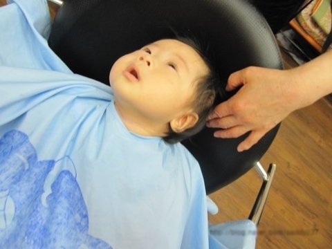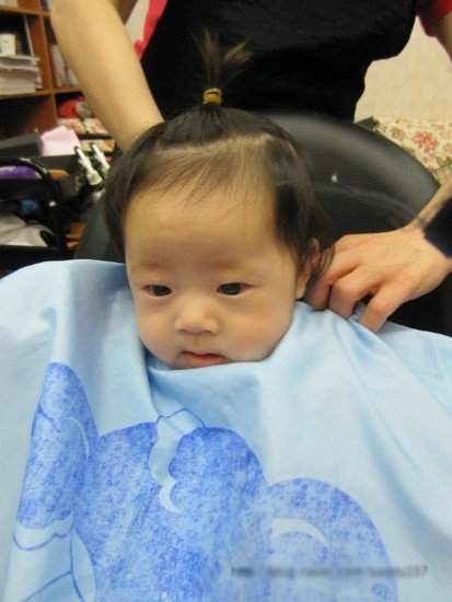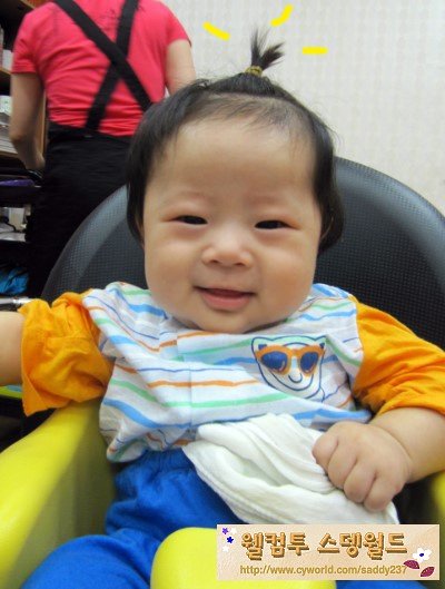 우리 아들 자신의 운명이 어찌될지도 모른체 방긋방긋 웃고있네용..ㅋㅋㅋ 배넷머리 간직하려고 꽁지머리 묶었어요!ㅋㅋㅋ 자 이제 머리 자를 준비를 합니다~ㅎㅎㅎ