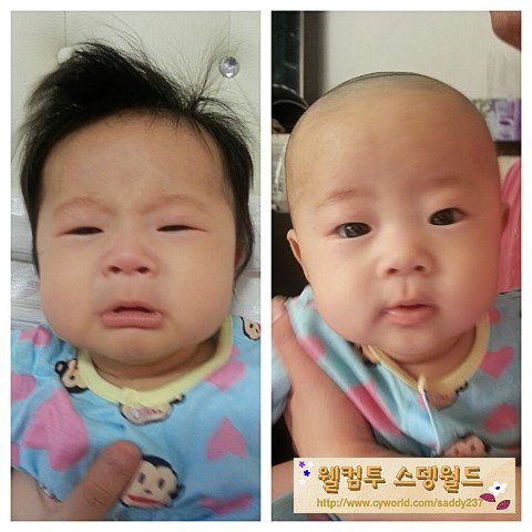 아래는 머리 밀기 전과후!! 어때요? 둘다 넘 귀엽고 이쁘죠>ㅁ<ㅋㅋㅋ 역시 난 아들바보~ㅎㅎㅎ