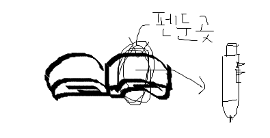 책이 조금 두꺼웠는데, 사이에 볼펜을 둔건 아니고 펜이 안굴러가도록
