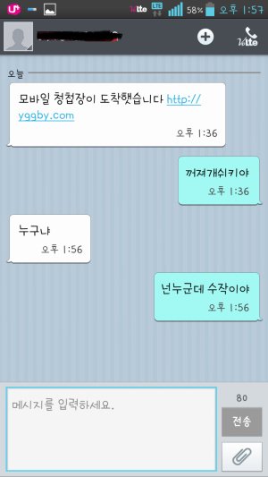 다들 스미싱 문자오면 '신고'할테야 해주삼 무서워서 그자리에서 지리는듯 ㅋ.ㅋ