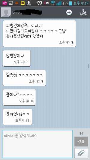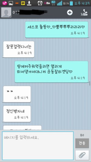 아 혹시 벌레청년보고있다면..... 부모욕문자로 신고할테얏? 뿌잉 ♡