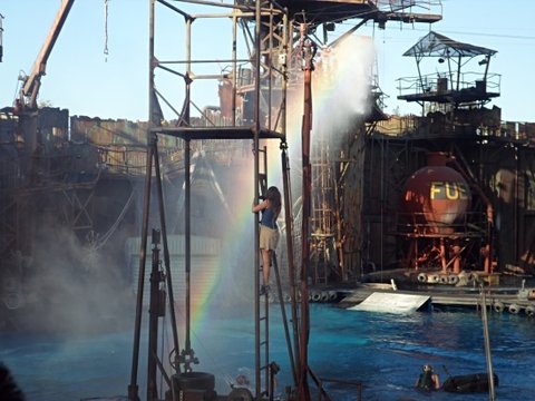 세트장 투어 중 홍수 체험... 저물에 쓸려가 죽는줄 알았다...