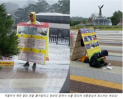 청와대 앞에서 1인 시위를 해오고 있고 저녁에는 길거리, 지하철, 음식점 등을 뛰어다니며