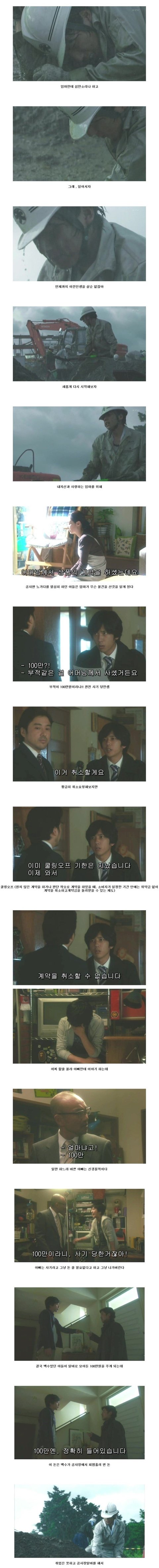 하.... 저거 영화아니고 드라마입니다. 프리터집을사다 입니다. 무슨 19금 생각들을 하고계신건지... 일하던중 엄마가아픈걸 발견하고 정신차리고 돈모아서 집산다는 얘기입니다. 중간에 엄마가 사기당할때 쓴 백만원은 집을 구하기위해서 모은돈 인거죠 단순결과 얘기하면 알바자리에서 알바생이아닌 정규직 계약하고 집은 아빠랑 돈합쳐서 이사가고 알바하면서 만난 여자와 잘된다는 그런 얘기입니다.