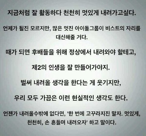 멋있게 정상에서 조금씩 내려올때 비스트 팬분들이 "내가수 잘했어..나에겐 항상최고가수야"