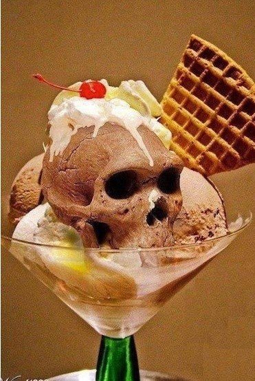 특히 아이스크림의 모양이 일반적인 모습처럼 둥그렇지 않고 해골의 모습을 하고 있어 눈길을 끈다.