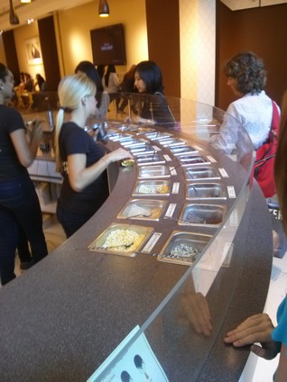 한사람당 직원 한명이 붙어 토핑을 올려줍니다.