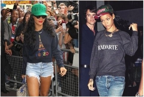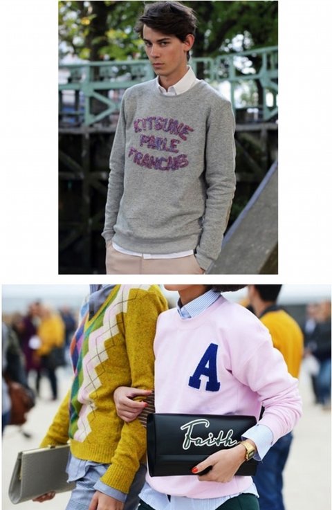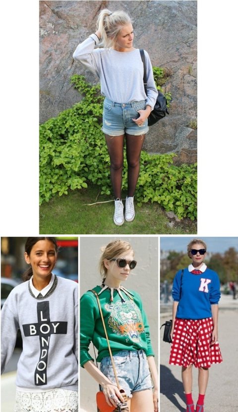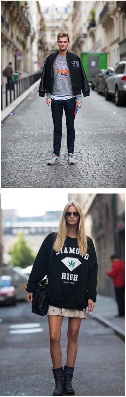 여자의 경우 오버사이즈의 스웨트 셔츠와 짧은 스커트 혹은 팬츠의 매치는