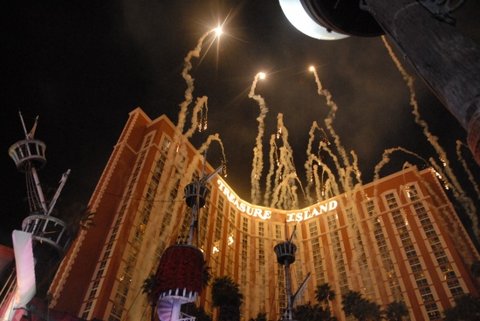 벨라지오 호텔의 분수쇼, 미라지 호텔의 화산쇼, 트레져 아일랜드의 해적쇼.