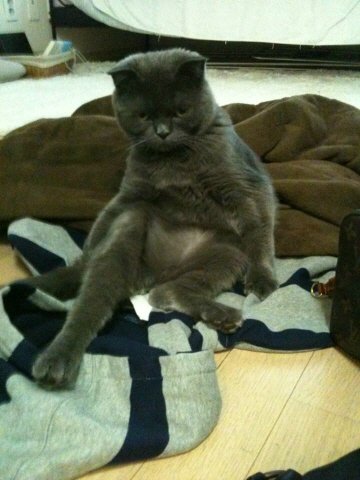 돌 이예요. 스코티쉬폴드 종이고 중성화한 남자아이 3살이예요. 어린나이치고 뱃살이 남다르죠~ㅎㅎ