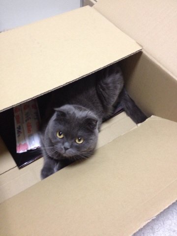 고양이 종이 다 그렇듯 돌이도 박스만 보면 뛰어가서 자리잡고 앉아요.