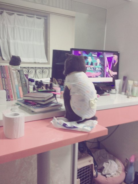요건 아는 언니가 분양받은 고양이 쿠키가 왔을 때 대면한 장면인데 쫄랑쫄랑 쫓아다니는데 쿠키가 쳐다보면 안 따라다니는 척, 안 보고 있는 척 ㅎㅎㅎ