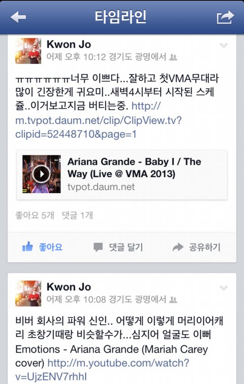 어제 조권도 트위터에 아리아나 앓이 글을 올렸ㅋㅋㅋㅋㅋ