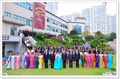 ▲ 안상홍님, 어머니하나님 신앙하는 하나님의교회 제60차 해외방문단 일행이 경기 용인에 위치한 하나님의교회 동백연수원을 방문해 기념촬영을 하고 있다.