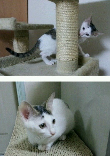 뽀얀 흰 코트를 입은 개구쟁이 캣초딩이예요ㅎㅎ