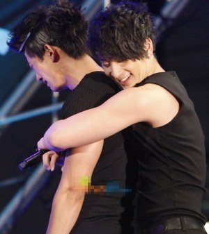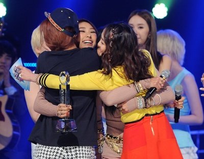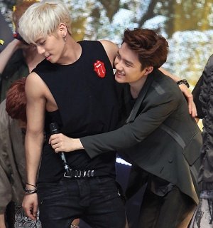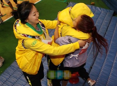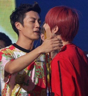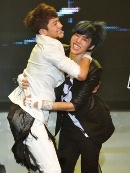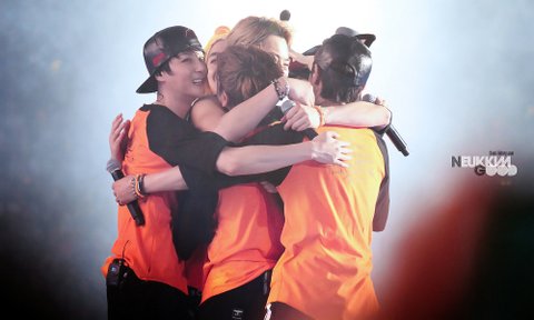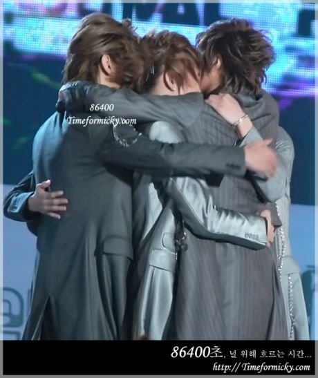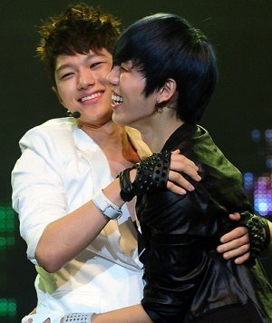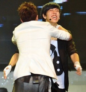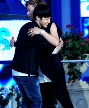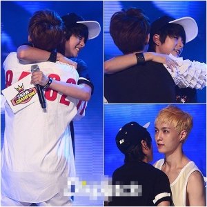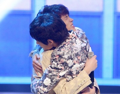 서로 포옹하는 훈훈한 아이돌