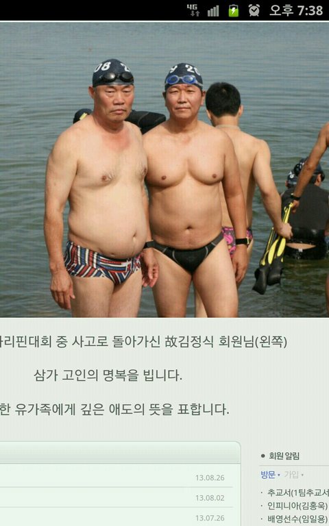 미사리 조정경기장에서 있던 수영대회 나가셨다가 사고로 익사하셨습니다