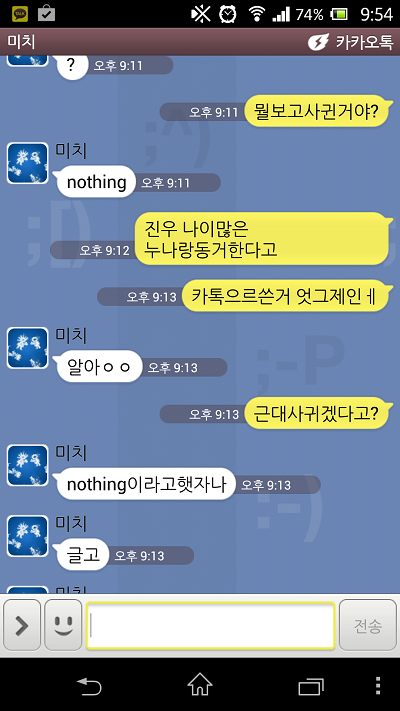 먼저 제가 저기 카톡 방에 있다 싸워서 나갔고요 그 후 몆칠후 mj가