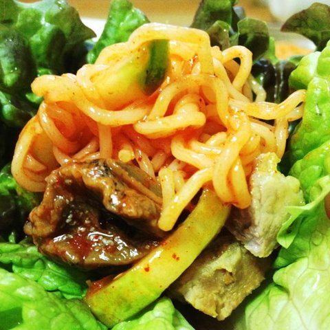 돼지고기 수육에다가 골빔면을 같이 쌈싸먹으면 울트라캡숑 짱!!