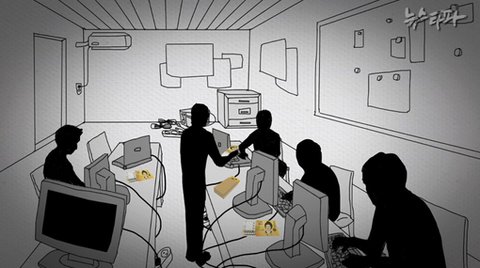 어제(29일) 뉴스타파는 탈북자조직인 NK지식인연대가 국정원 심리전단과 같은 정치개입 활동을 해왔다고 보도했다. 이들은 <전야>라는 비밀조직을 구성하여 이명박 정부를 홍보하고 정부여당을 비판하는 사람을 종북으로 매도하는 글들을 인터넷에 게시하고 1인당 월 2000만 원 가량의 돈을 받았다. <전야>의 조직 규모는 100명이 넘는다고 한다.