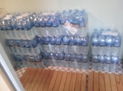 31일 한 인터넷 카페 게시판에는 "이거 받으면서 빵 터졌어요"라는 글과 함께 생수 168개의 사진이 게재됐다.