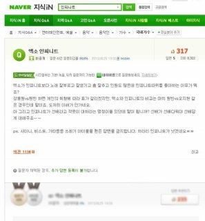 제가인피니트를좋아해서 검색중이엿습니다.그런데 검색창에인피니트를치고 첫번째지식인에 엑소인피니트가 잇길래 들어가봣더니 이런글이있엇네요 ..인피니트외 유명아이돌들을욕하고 그런무개념 팬을봣습니다 .지능형안티여도인피니트 까는글을그냥넘길수가없어서 올립니다 .