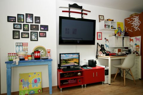 방사진입니다.. 빨간서랍장 위에는 50인치 TV 걸생각이구요..