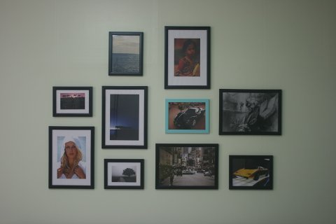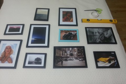 다이소에서 구입한 액자 10개로 침대위 벽면 갤러리를 만들려고 블랙 무광 도색중입니다.