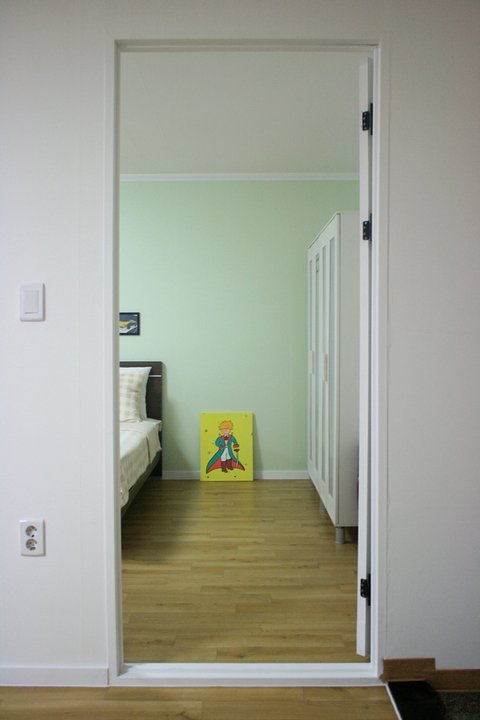 페인트 색상은 온리 화이트로만 했구요..방에 한벽면만 화이트그린 색상을 칠했습니다.