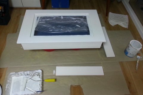 제 방 첫번째를 보시면 아시겠지만 노란색이었던 벽걸이어항을 화이트로 페인트작업을 합니다.