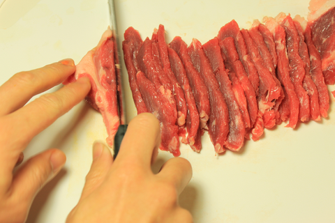 소고기를 얇게 썰어서,