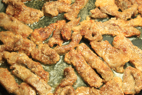 바싹 마를때까지 튀겨주는게 포인트인 요리에요. ㅎㅎ이름하야 Dried beef! 매콤한게 맛나요. ㅎㅎ