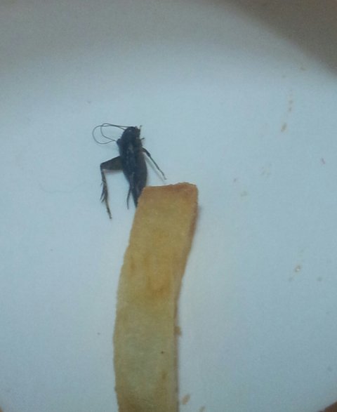 버거를 다 먹고 감자튀김을 먹던중에 밑에서 검은것이 보이길래 처음에는 감자튀긴 탄 부분인줄 알았습니다. 그런데 다 먹었을때 쯤이야 그것이 뭔지 확인이 되더군요. 감자튀김과 같이 튀겨진 귀뚜라미였습니다. 처음부터 발견했더라면 먹지도 않고 바로 환불했을텐데 다 먹고나서야 발견해서 더 역겹고 토할꺼같고 손도 떨리더군요.
