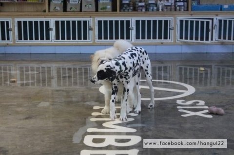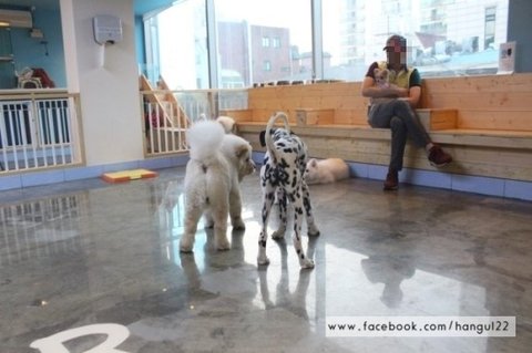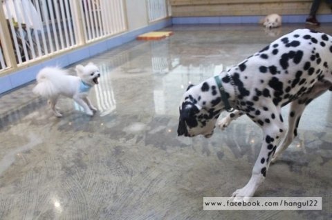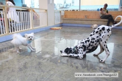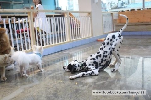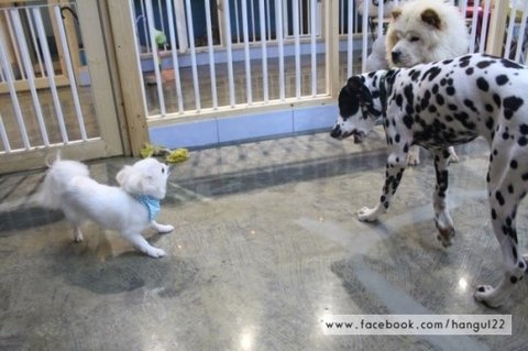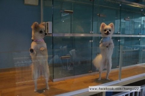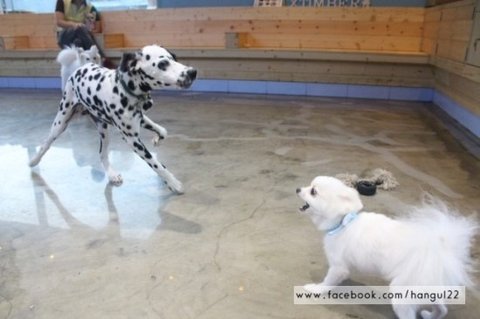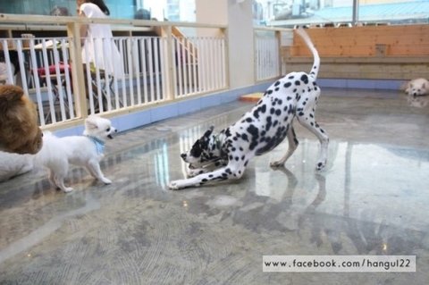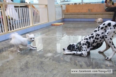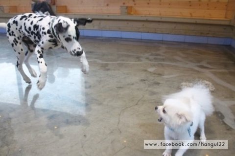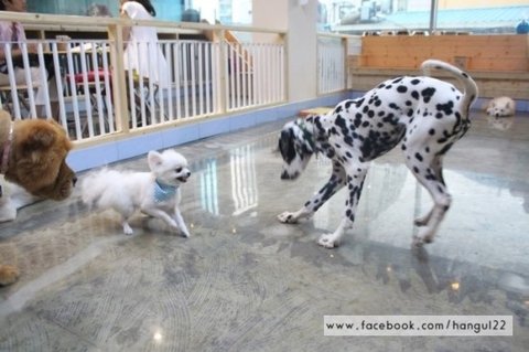 장기 임시보호 해주고 있는 애견카페 식스팀버