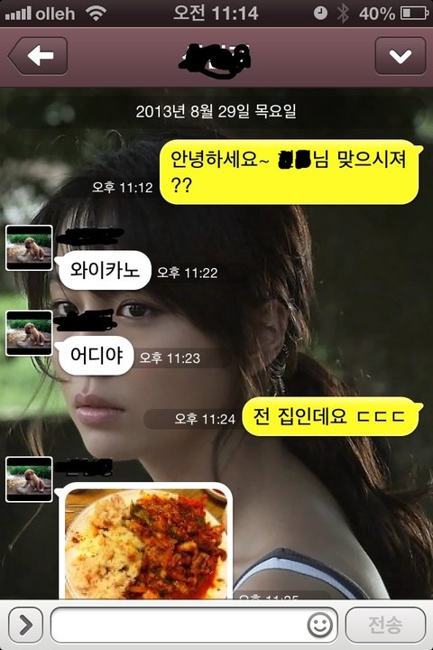 " oo씨~ 주신 전화번호 맞는거에요?? 카톡 보냈는데 다른 사람인거 같기도 하고 ㅋㅋ"