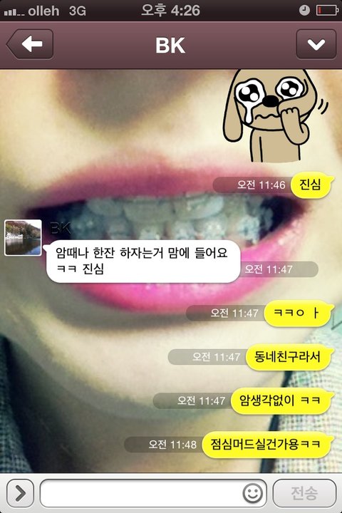 마침 친구중에 BK 란 이름을 쓰는 친구가 있어서 걘줄 알았다고 ㅋㅋㅋㅋㅋㅋㅋㅋㅋㅋ