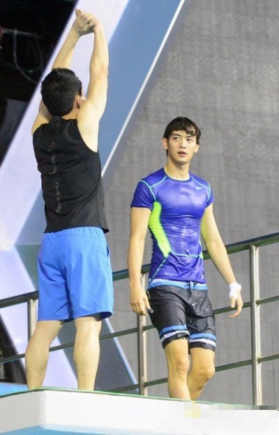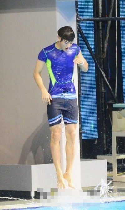 물에 젖으니까 확 드러나는 마른 잔근육들....