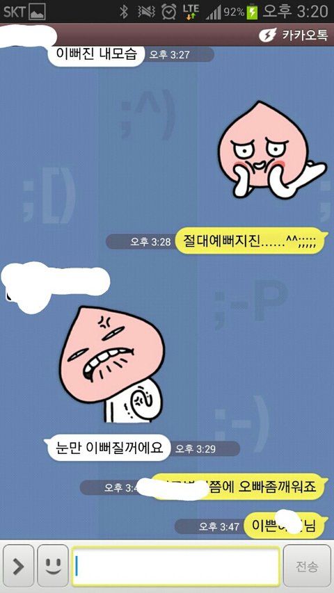 "그리고 이쁜ㅇㅇ님이라고 한거는 다른뜻이 아니라 꺠워달라고 아부떤것뿐이야."